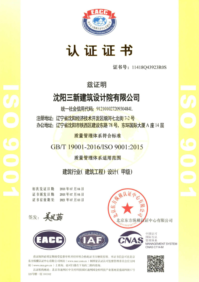 2018年6月28日~29日,北京東方縱橫認(rèn)證中心對沈陽三新建筑設(shè)計院進(jìn)行質(zhì)量管理體系認(rèn)證審核,經(jīng)過兩天的審核,專家對公司的管理體系運行情況給予好評,滿足標(biāo)準(zhǔn)要求,同時也給出了切實的改進(jìn)建議。公司組織各部門對審核過程中發(fā)現(xiàn)的不符合進(jìn)行了總結(jié)討論,并針對存在的問題舉一反三,制定并實施整改計劃及預(yù)防措施,效果顯著。