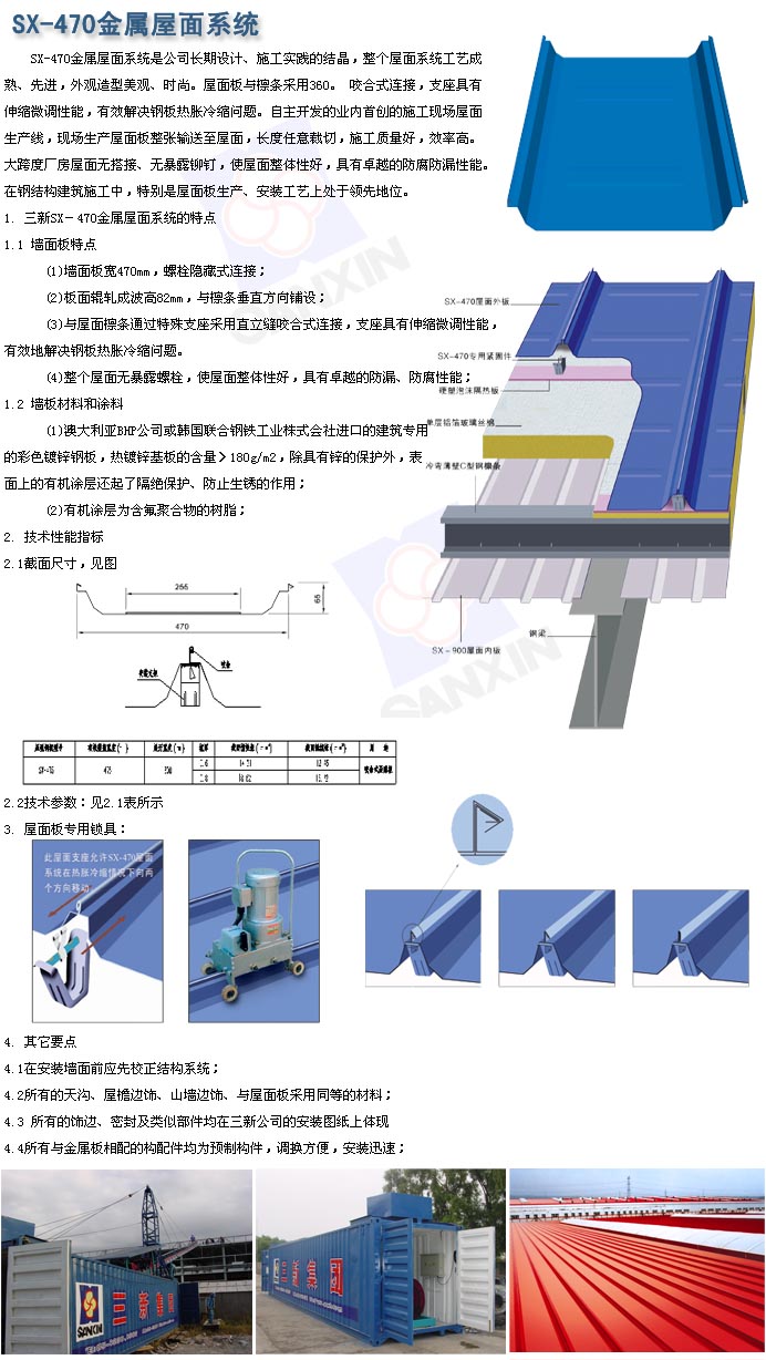 SX-470直立縫鎖扣式屋面系統(tǒng)